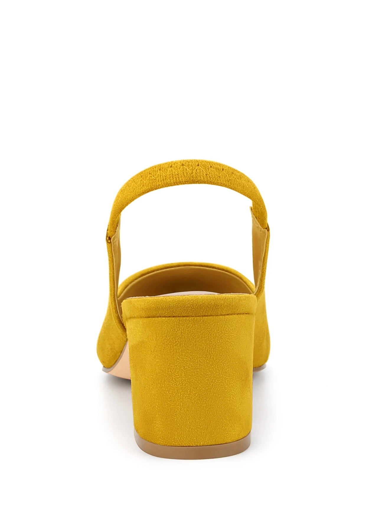 Faux Suede Pointed Toe Block Heel Slingback Pumps